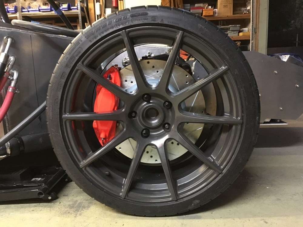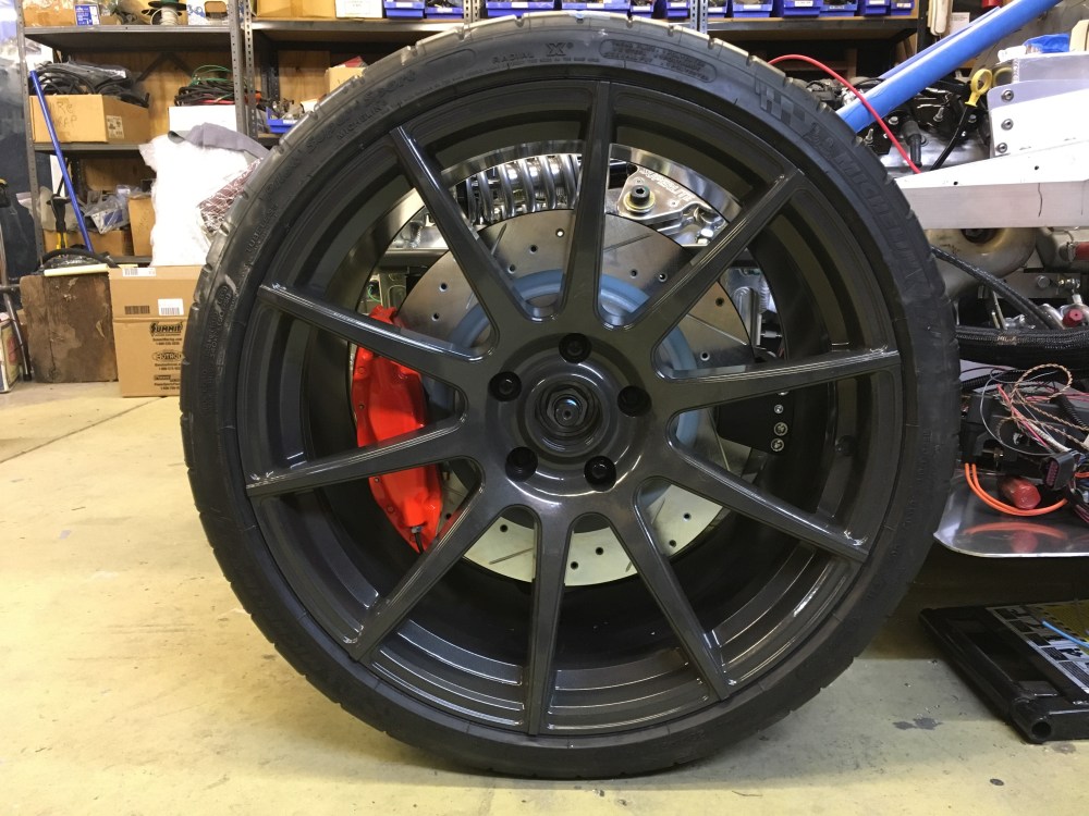 Surprisingly, the procedure went smoothly and I mounted the e-brake calipers without any drama. Before vs after pic; I always get jazzed seeing how well the calipers turned out and in combination with the CF10 wheels.